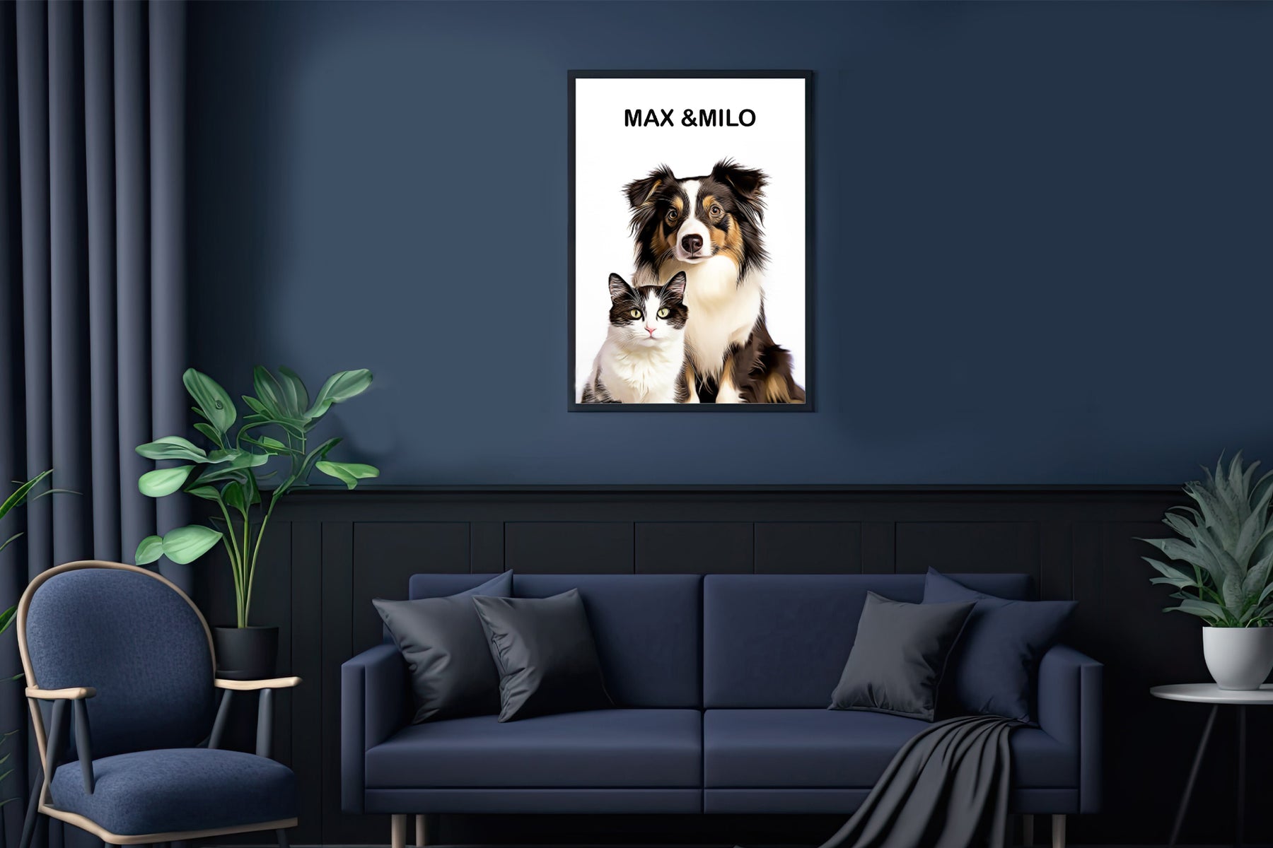 - Customize & make it your ownAdd your pet's name, choose a background color, customize the style, and select a frame & size.